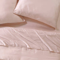 Smoothly stretch the vegan silk fitted sheet over your mattress, and layer on the Duvet cover for ultimate comfort and breathability.